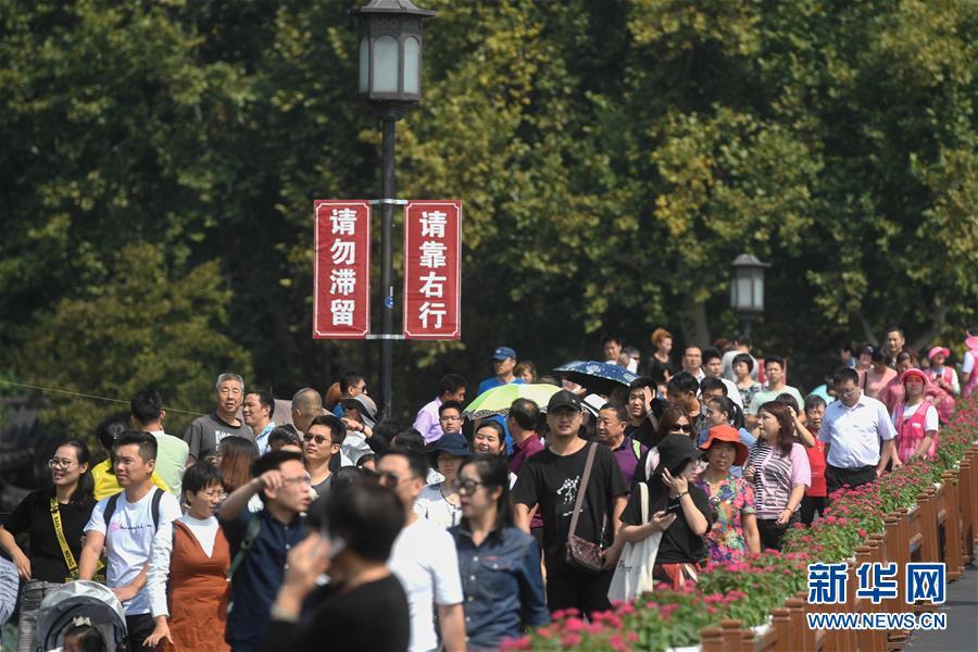 10月7日,杭州西湖風(fēng)景區(qū)的斷橋上游人絡(luò)繹不絕。為維持秩序,景區(qū)采取了雙向游客互相隔離的措施。當(dāng)日是國慶黃金周最后一天,眾多游客來到杭州西湖景區(qū)觀光游覽,熱度不減。據(jù)杭州市旅游委員會公布的數(shù)據(jù)顯示,從10月1日起截至10月7日12時,國慶七天杭州市各景區(qū)(點(diǎn))接待游客總量達(dá)到1776.14萬人次,其中西湖風(fēng)景名勝區(qū)管委會所屬公園景點(diǎn)共接待游客452.2萬人次。新華社記者 黃宗治 攝