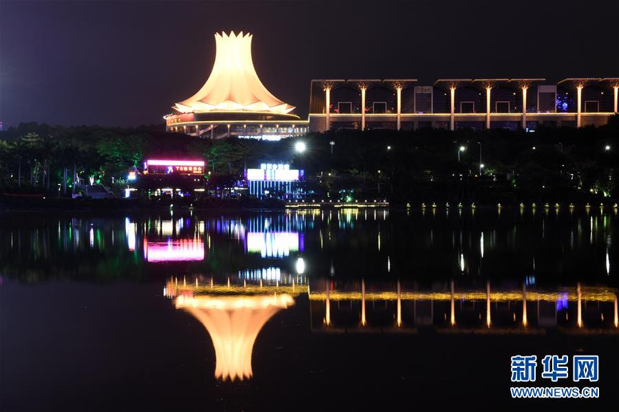 廣西南寧國際會展中心倒映在水面(12月10日攝)。 新華社記者 陸波岸 攝