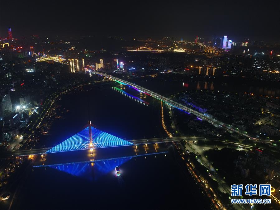 夜幕下的廣西南寧市一景(11月29日無(wú)人機(jī)拍攝)。  新華社記者 周華 攝