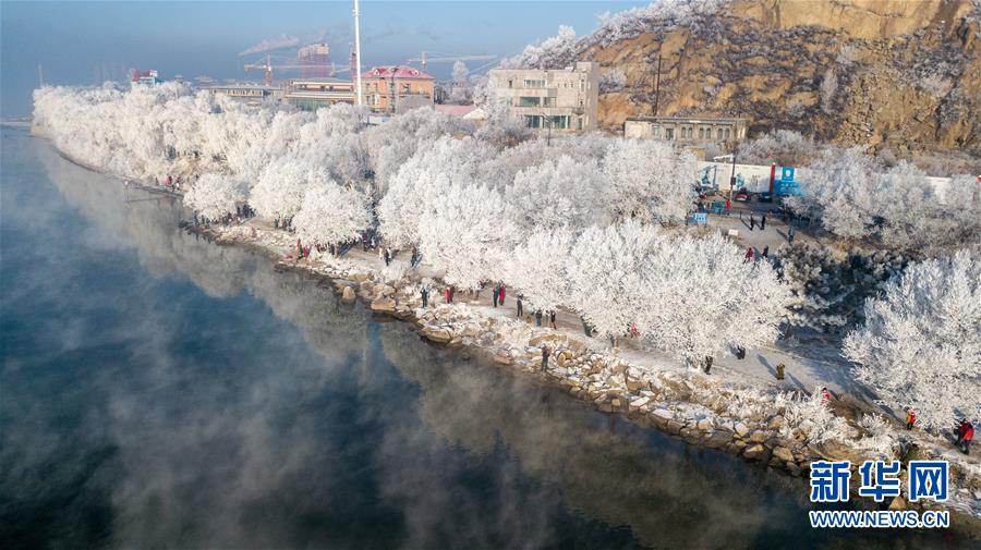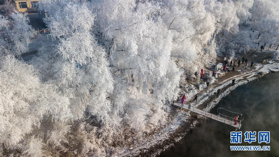 當日,吉林省吉林市出現(xiàn)霧凇景觀,松花江畔的樹木仿佛披上了銀色盛裝。