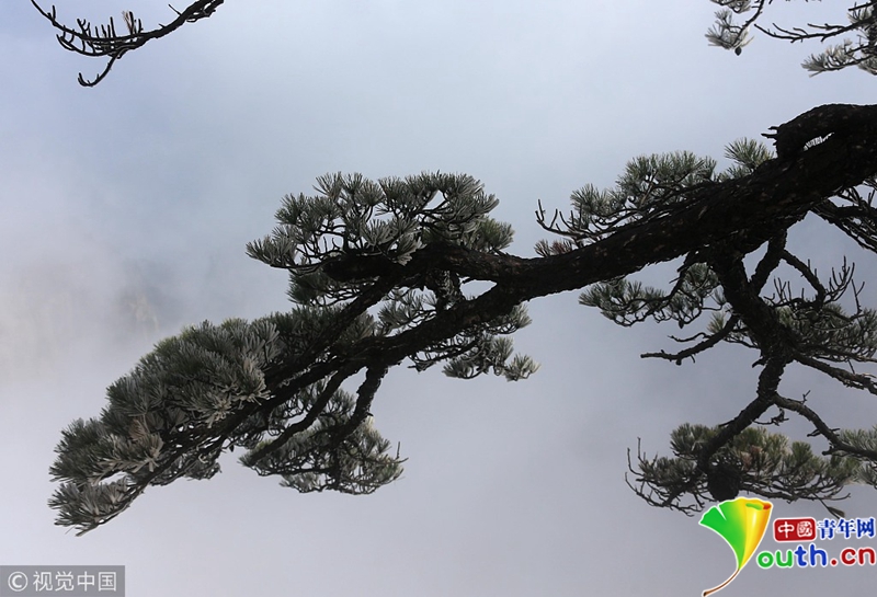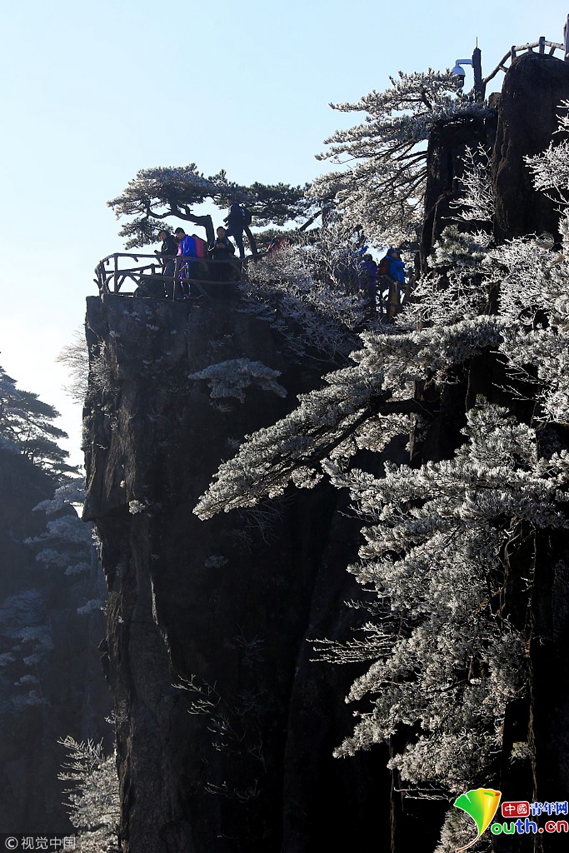 安徽黃山出現(xiàn)了四月陽春罕見的霧凇奇觀。
