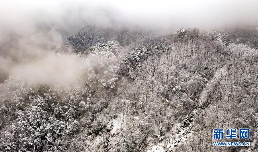 雪后初霽的鬼谷嶺國家森林公園(11月8日無人機拍攝)。 新華社記者陶明攝