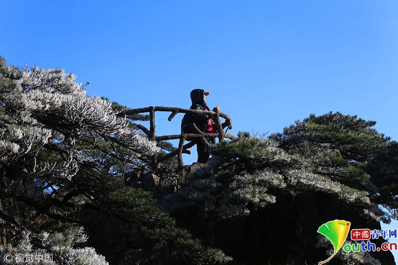 安徽黃山,受強冷空氣影響,氣溫突降,出現(xiàn)了四月陽春罕見的霧凇奇觀。