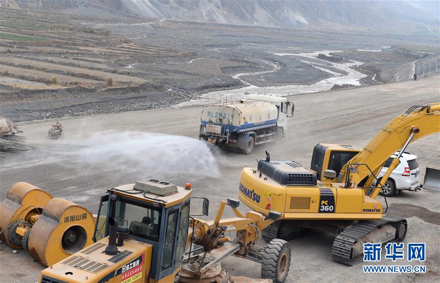 12月15日,一輛灑水車在中鐵上海局集團(tuán)公司施工的東格高速公路土建項目工地進(jìn)行灑水降塵作業(yè)。新華社記者楊宗友攝