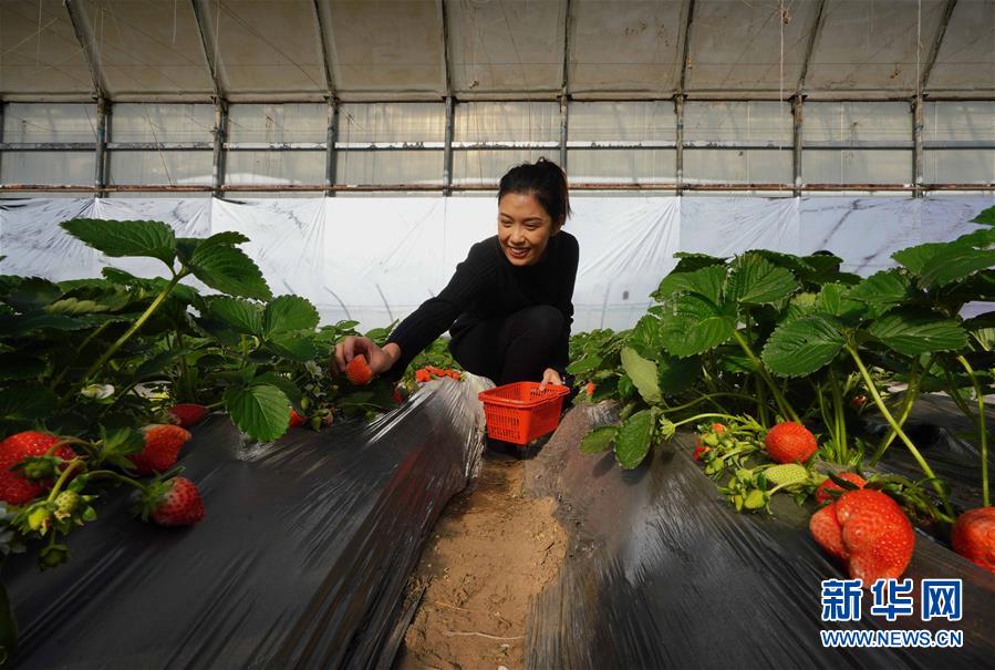 12月15日,游客在唐山市曹妃甸區(qū)一家生態(tài)園的大棚內(nèi)采摘草莓。 新華社記者 楊世堯 攝