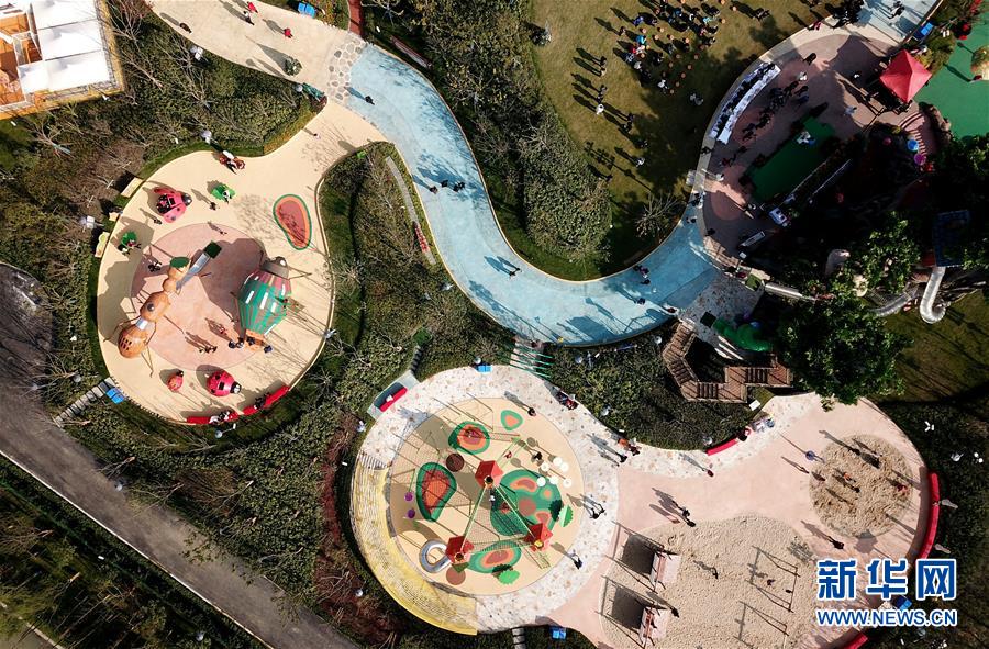 12月18日無人機(jī)拍攝的世茂精靈之城主題樂園內(nèi)的蟲蟲世界等項(xiàng)目區(qū)域。 當(dāng)日,“世茂精靈之城主題樂園奇幻親子嘉年華開幕暨上海公益基地揭牌儀式”在位于上海佘山國家旅游度假區(qū)的世茂精靈之城主題樂園一期(“深坑秘境”)正式啟動(dòng)?!吧羁用鼐场迸徤虾Y苌绞烂揠H酒店,除了擁有俯瞰“深坑”的玻璃棧道外,還包括360度崖壁大擺錘、精靈樹屋、沙漠考古、夢幻水域和蟲蟲世界等項(xiàng)目,帶來親子游玩新體驗(yàn)。 新華社記者 方喆 攝