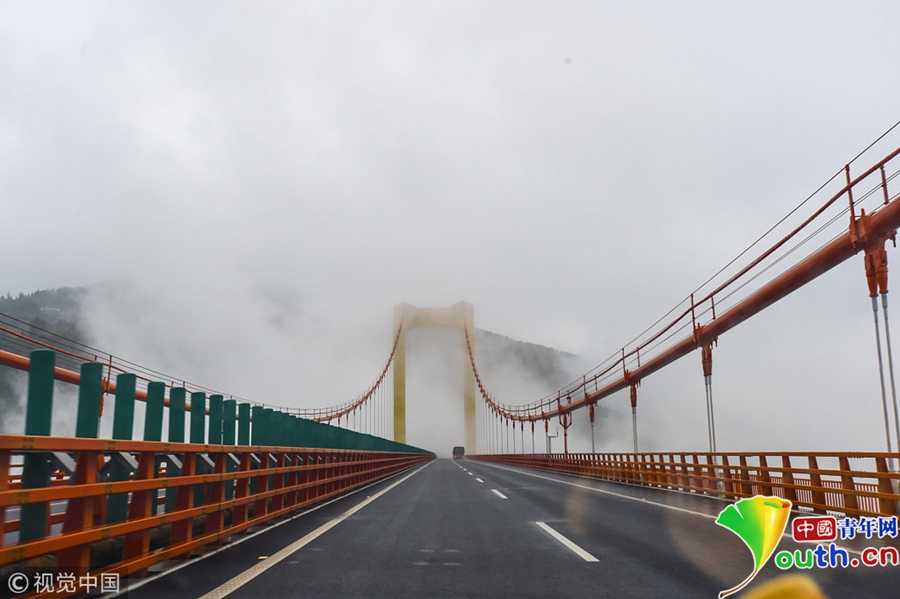 普立大橋云飄霧繞如仙境 一路風(fēng)光美不勝收