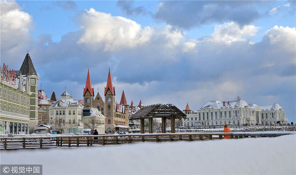 2018年12月7日,山東煙臺,雪后的海濱景色。當日煙臺迎來今冬首場降雪,海濱建筑在大雪的裝點下,形成海濱城市獨有的美麗雪景。地處膠東半島的煙臺,冬季降雪量遠高于地理位置相近的其他地區(qū),形成了獨特的海濱雪城,是中國著名的“雪窩”。唐克/視覺中國