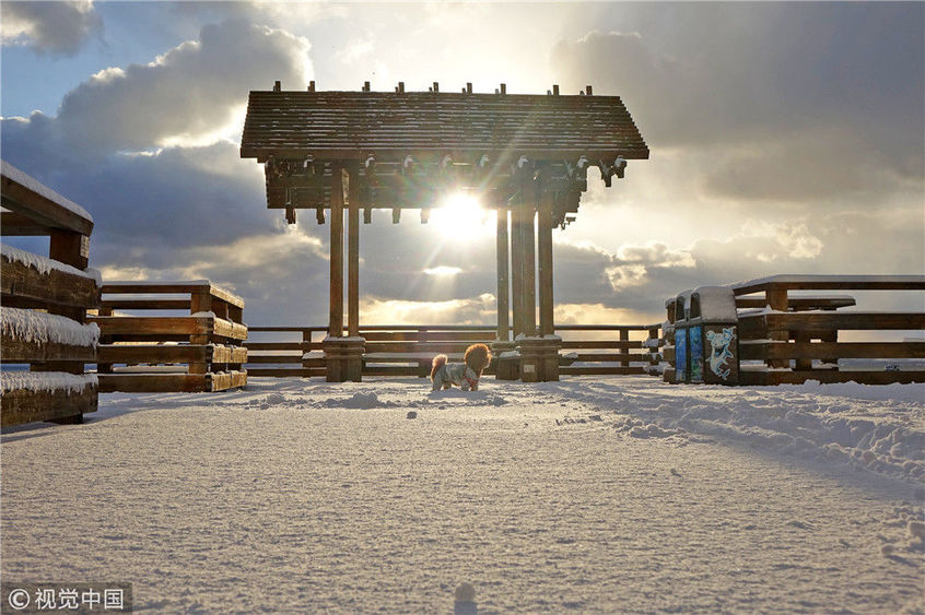 2018年12月7日,山東煙臺(tái),雪后的海濱景色。