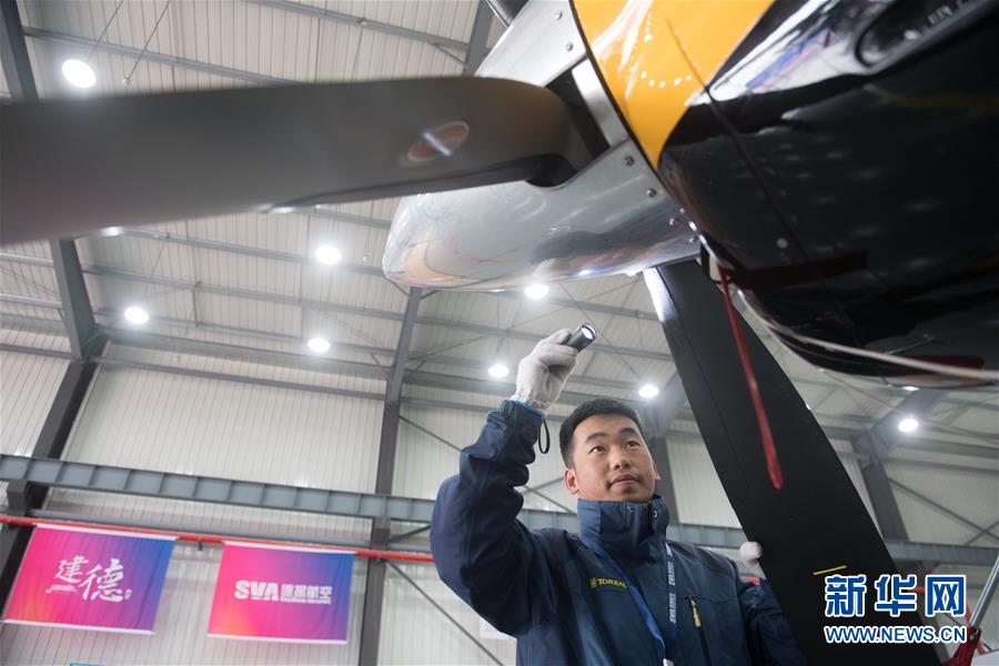 12月20日,在建德市航空小鎮(zhèn),工作人員對一架大棕熊100系列飛機(jī)進(jìn)行日常維護(hù)。 當(dāng)日,浙江省建德市航空小鎮(zhèn)通航制造板塊首架飛機(jī)下線交付。此次下線交付的大棕熊100系列Ⅱ飛機(jī)由美國Quest飛機(jī)制造公司出品,有望在通用航空領(lǐng)域發(fā)揮作用。建德市自2016年開始航空小鎮(zhèn)創(chuàng)建,2017年被列入全國第二批特色小鎮(zhèn)名單。 新華社記者翁忻旸攝
