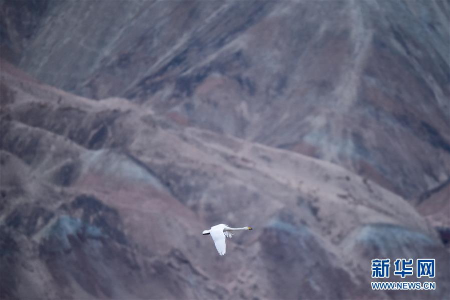 12月21日,一只天鵝在黃河岸邊飛翔。新華社記者吳剛攝