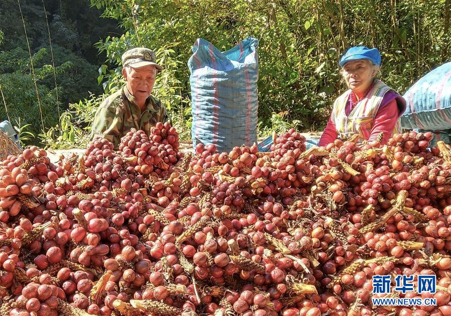 獨(dú)龍江鄉(xiāng)馬庫村村民在整理收獲的草果,準(zhǔn)備賣到外地市場(chǎng)(2018年11月10日攝)。 新華社發(fā)(楊時(shí)平 攝)