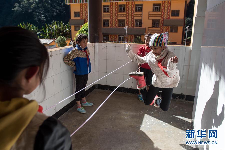 在獨(dú)龍江鄉(xiāng)中心小學(xué),孩子們?cè)谔そ睿?016年11月23日攝)。 新華社記者 胡超 攝