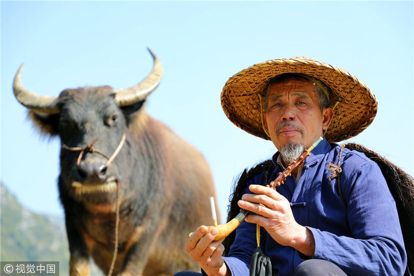 2018年12月17日,廣西桂林。用不到3年時間,農(nóng)民許修保愣是將自己家的水牛訓(xùn)練得走上了貓步,這讓來自全國各地的游客嘖嘖稱奇:你這么牛,維密天使情何以堪?憑著與水牛的聯(lián)袂演出,一個月下來,老許會有兩三萬的收入進賬,佩服得左鄰右舍紛紛向他伸出了大拇指。棋簿紫/視覺中國