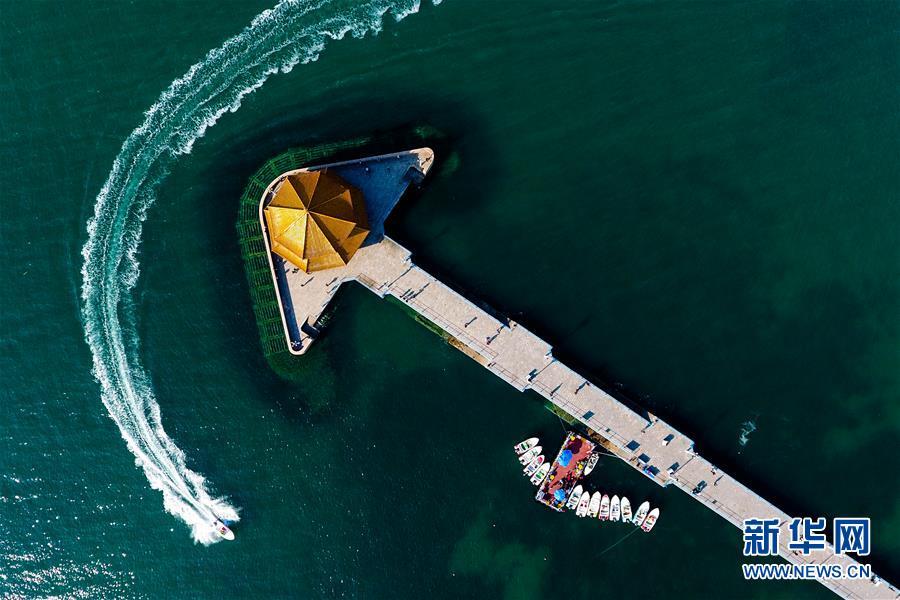 一艘游艇駛過(guò)山東青島棧橋旁的海面(5月4日無(wú)人機(jī)拍攝)。 在即將過(guò)去的2018年,各地?cái)z影師用鏡頭記錄下四季中國(guó)。大江南北,一幅幅色彩斑斕的美麗畫(huà)卷徐徐展開(kāi)。 新華社記者 郭緒雷 攝