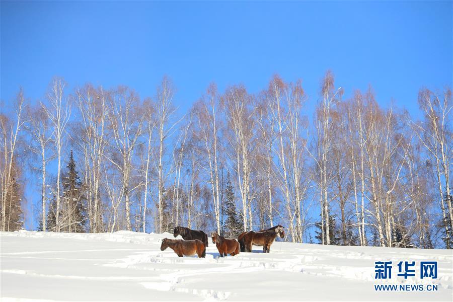 新疆喀納斯景區(qū)冬日美景如畫。