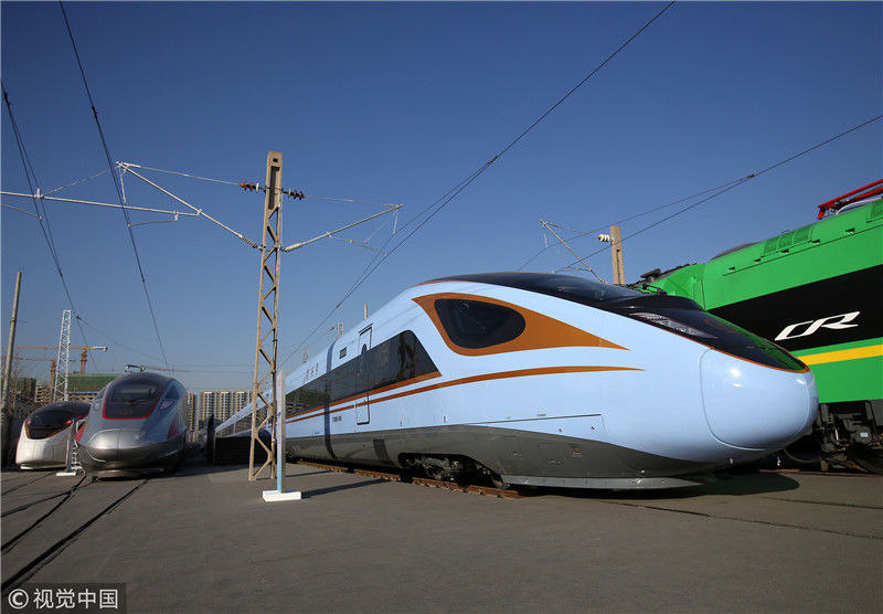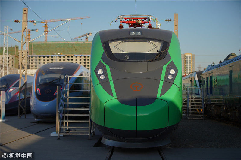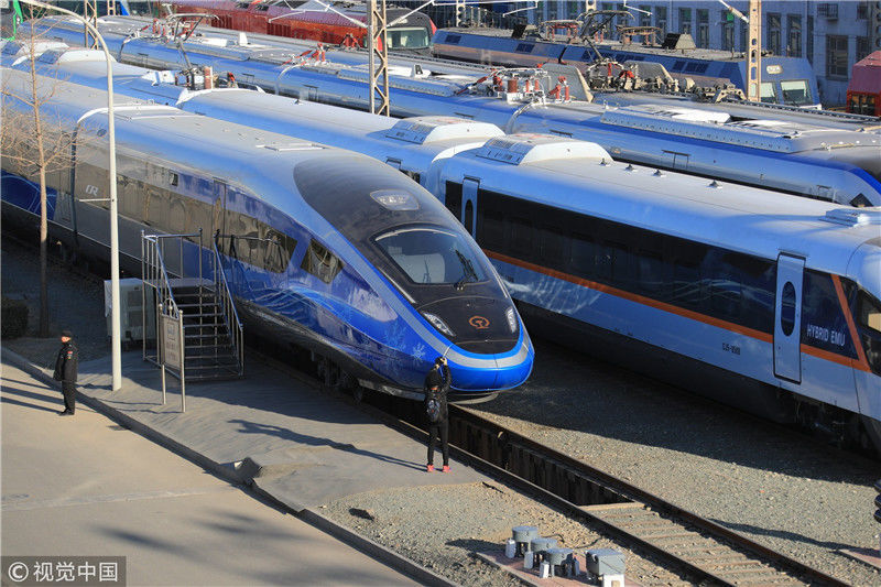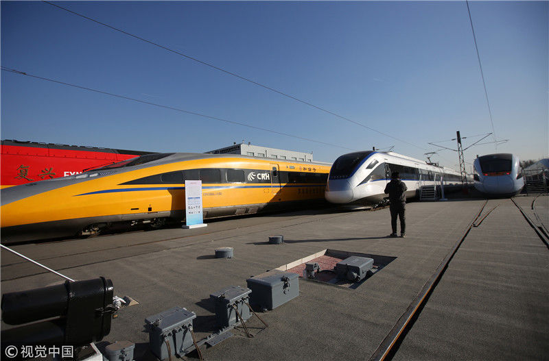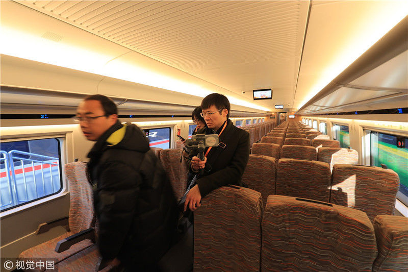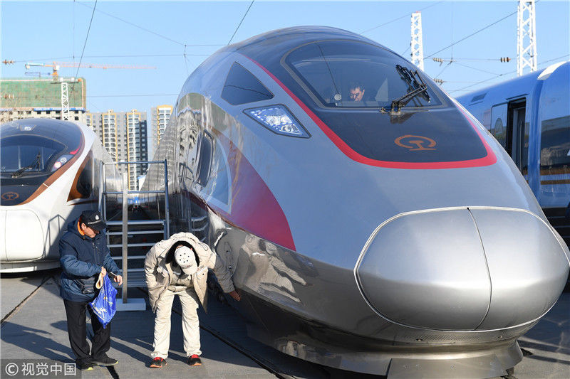 2018年12月24日,北京,中國鐵路科技創(chuàng)新成果展在國家鐵道試驗(yàn)中心舉行。新型復(fù)興號(hào)動(dòng)車組實(shí)車首次公開亮相,現(xiàn)場體驗(yàn)乘車運(yùn)行。視覺中國