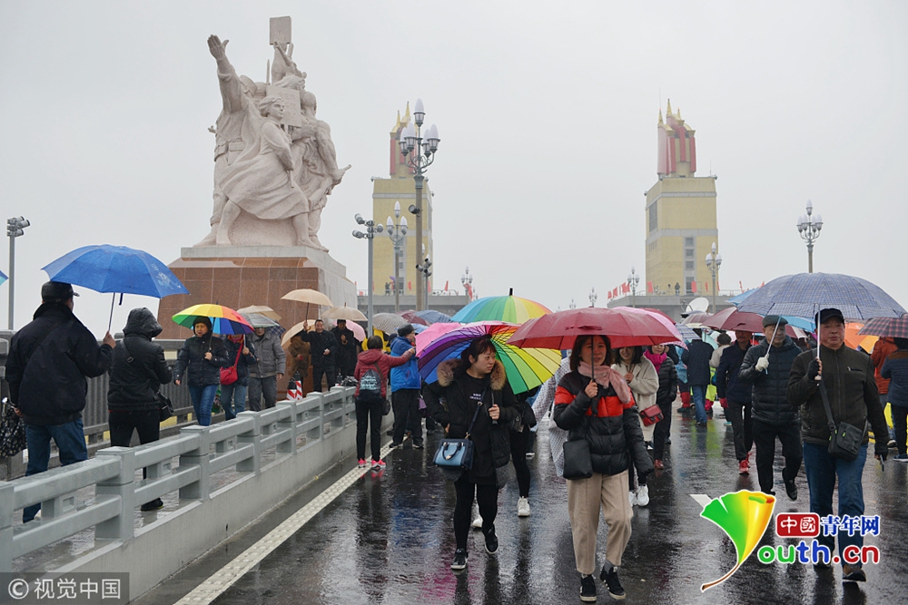 2018年12月26日,南京。南京長江大橋維修改造工程竣工通車在即,12月26日至28日三天向公眾開放,12月26日,“市民開放日”首日,早晨九時許,雖然下著雨,但記者在南京長江大橋入口和橋上看到,如織的市民打著傘來到大橋,整個橋上全是撐傘觀看的市民,足有萬人,十分壯觀。