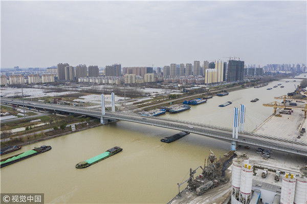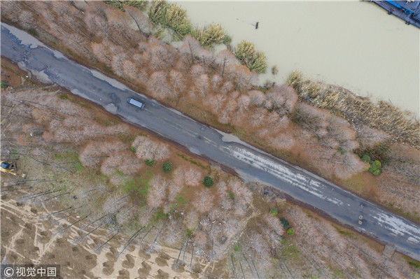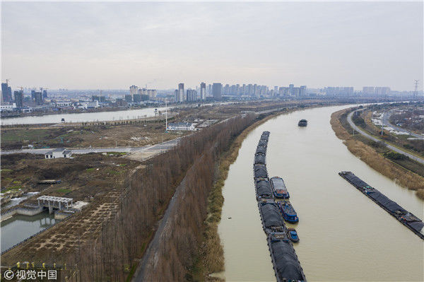 2018年12月27日,江蘇淮安,航拍京杭大運(yùn)河淮安段冬日景色。吳揚(yáng)/視覺(jué)中國(guó)
