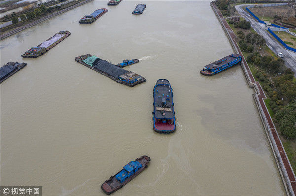 航拍京杭古運(yùn)河冬景