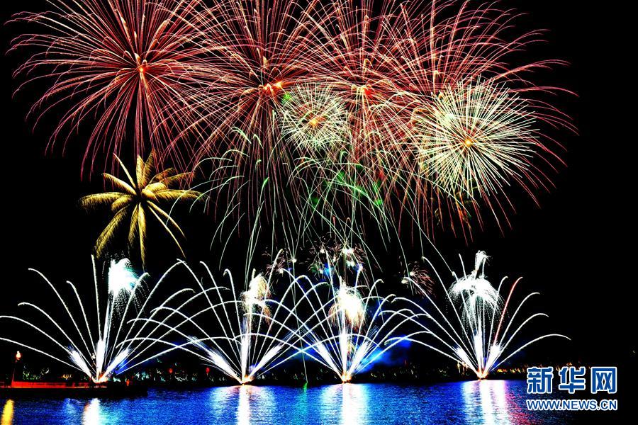 1月1日,在俄羅斯首都莫斯科,人們參加迎新年活動。 新華社記者白雪騏攝