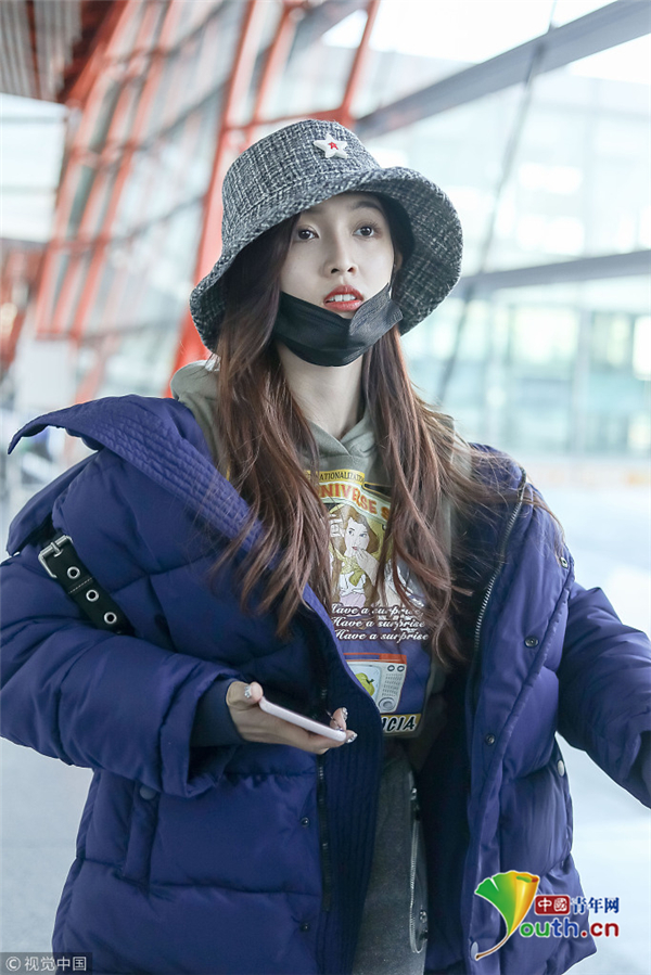 1月1日,北京,吳宣儀現(xiàn)身機(jī)場(chǎng)。外帶著漁夫帽的她嘟嘴顯可愛(ài),裹著厚重羽絨服認(rèn)真過(guò)冬超保暖。