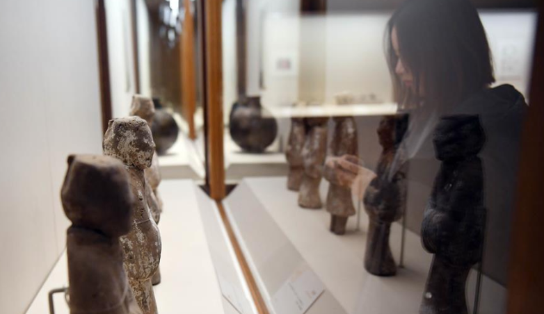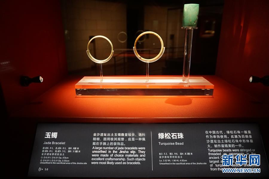 這是金沙遺址博物館里展出的跨文明特展展品(1月1日攝)。