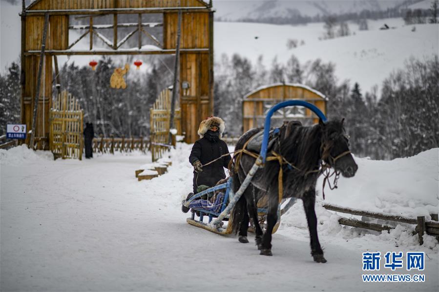 1月1日,在新疆禾木雪鄉(xiāng),當(dāng)?shù)鼐用癖硌菅┑刭愸R。