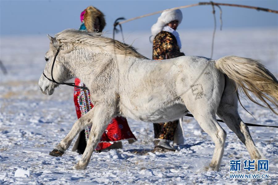 1月8日,牧民表演馬背拾哈達(dá)。 時(shí)下正值草原冬季旅游旺季,內(nèi)蒙古自治區(qū)西烏珠穆沁旗的牧民們?cè)谘┰弦徽股硎?,為游客展現(xiàn)獨(dú)特的民族風(fēng)情。 新華社記者 鄒予 攝