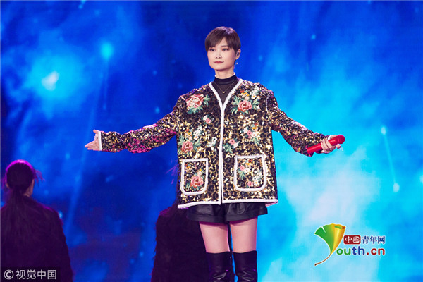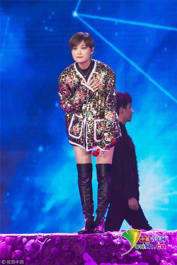 2019年1月8日晚,北京,李宇春亮相第17屆電影頻道電影百合獎頒獎典禮,并演唱了一首《你是如此難以忘記》。當晚的她一身閃花衣搭配黑色短褲長靴,一雙長腿吸睛十足,盡顯女人柔美和帥氣的雙重魅力,她手放胸前鞠躬向觀眾致意,謙遜有禮。