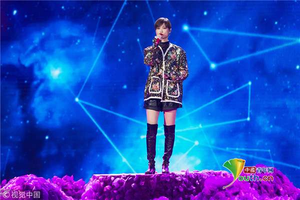 2019年1月8日晚,北京,李宇春亮相第17屆電影頻道電影百合獎(jiǎng)?lì)C獎(jiǎng)典禮,并演唱了一首《你是如此難以忘記》。當(dāng)晚的她一身閃花衣搭配黑色短褲長靴,一雙長腿吸睛十足,盡顯女人柔美和帥氣的雙重魅力,她手放胸前鞠躬向觀眾致意,謙遜有禮。