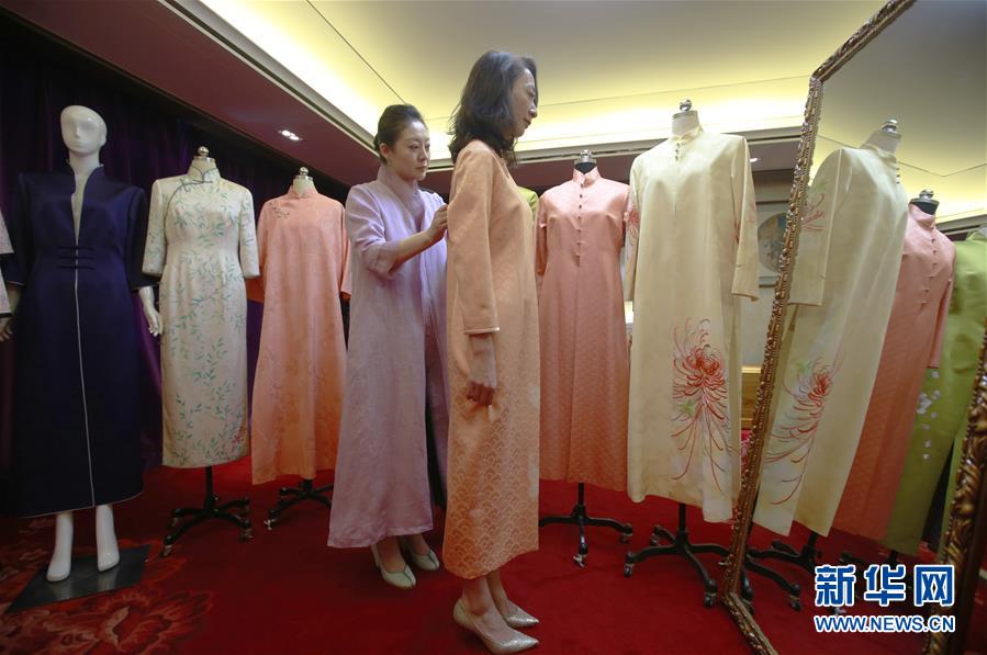 1月12日,在北京“碧泓云想”服裝設(shè)計(jì)工作室,高定服裝設(shè)計(jì)師畢紅在為中式服裝制作刺繡紋樣。畢紅設(shè)計(jì)的中式服裝以棉、麻、真絲等面料為主。春節(jié)來(lái)臨,其團(tuán)隊(duì)加班加點(diǎn)為顧客趕制中式服裝。