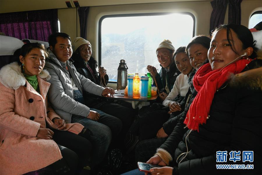 春運臨近,西藏鐵路客流逐漸增大。從拉薩發(fā)往西寧的中國鐵路青藏集團公司西寧客運段Z6802次旅客列車滿載著游客、務(wù)工人員、學生、朝佛信眾等,穿梭在白雪皚皚的高原上。
