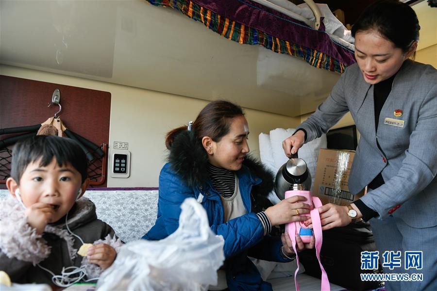 春運臨近,西藏鐵路客流逐漸增大。從拉薩發(fā)往西寧的中國鐵路青藏集團(tuán)公司西寧客運段Z6802次旅客列車滿載著游客、務(wù)工人員、學(xué)生、朝佛信眾等,穿梭在白雪皚皚的高原上。