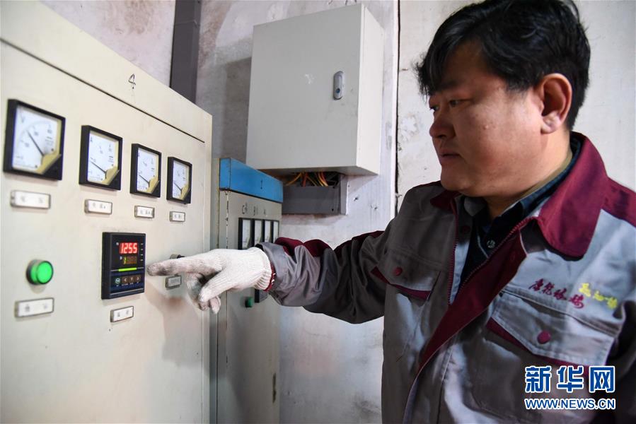 1月12日,孫云毅在展示他引入的電動控溫設備,目前爐溫顯示1255攝氏度。 新華社記者王凱攝