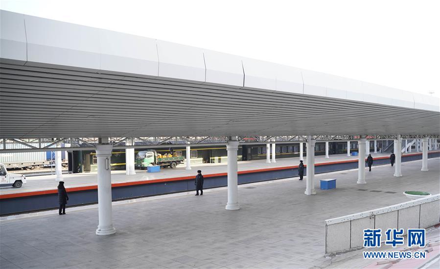 1月11日,在滿洲里火車站站臺,“金鑰匙”服務臺客運員在嚴寒中等待列車進站。