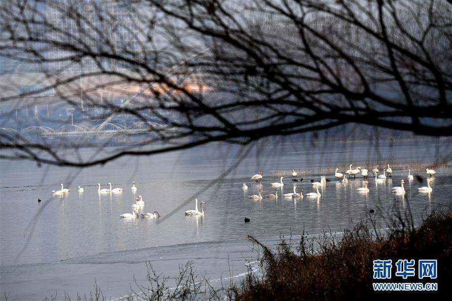1月3日,白天鵝在三門峽黃河濕地棲息。 新華社記者朱祥攝