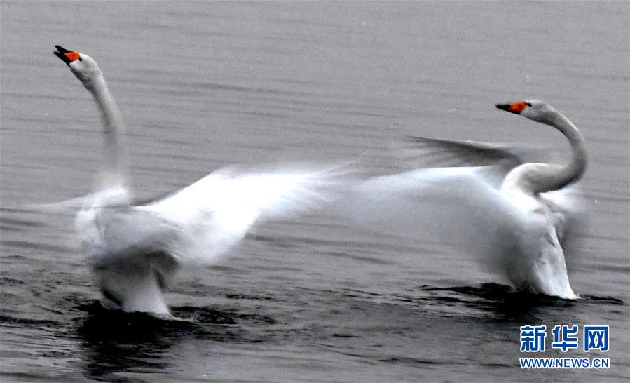 1月4日在三門峽黃河濕地拍攝的白天鵝。 新華社記者王丁攝