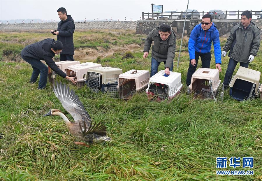 當(dāng)日,江西省野生動植物救護(hù)繁育中心、天津市野生動物救護(hù)馴養(yǎng)繁殖中心在江西鄱陽湖國家級自然保護(hù)區(qū)將16只被救治的珍稀候鳥成功放飛。其中1只東方白鸛為國家一級保護(hù)動物,2只大天鵝、3只鴛鴦為國家二級保護(hù)動物。