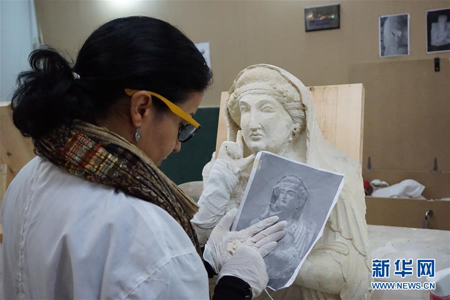 12月5日,在敘利亞首都大馬士革,文物修復師赫芭·朱馬在國家博物館內(nèi)修復來自巴爾米拉的受損雕像。 在敘利亞國家博物館展廳一角,文物修復師赫芭·朱馬正給一座受損的雕像“整容”?!拔覍@座雕像有特殊的感情,‘她’就像我的家人一樣?!敝祚R說,包括這座雕像在內(nèi),館內(nèi)大部分受損文物都來自她的家鄉(xiāng)巴爾米拉。這座敘利亞古城有2000多年的歷史,是一座古羅馬風格的歷史遺址,1980年被聯(lián)合國教科文組織列入世界文化遺產(chǎn)名錄。過去數(shù)年間,極端組織“伊斯蘭國”先后兩次攻占巴爾米拉,不僅濫殺無辜,還大肆破壞遺跡文物。2017年3月,敘利亞政府軍重奪對巴爾米拉的控制權(quán),劫后余生的文物被分批運到首都大馬士革保存。數(shù)月前,國家博物館組建文物修復小組,朱馬也從巴爾米拉被調(diào)來參與修復工作。受人力、材料和技術(shù)所限,修復工程預計需要5至8年才能完成。朱馬說,很多雕塑碎成多塊,拼接十分耗時。盡管挑戰(zhàn)重重,但朱馬對修復過程絲毫不馬虎?!摆s緊好起來吧,等修好了,我?guī)銈兓丶?。”她總是如此喃喃而語。 新華社記者汪健攝