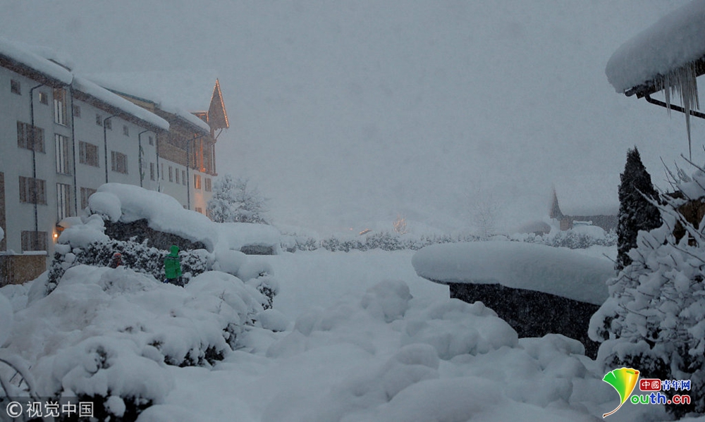 奧地利暴風雪持續(xù) 公交車站被積雪掩埋