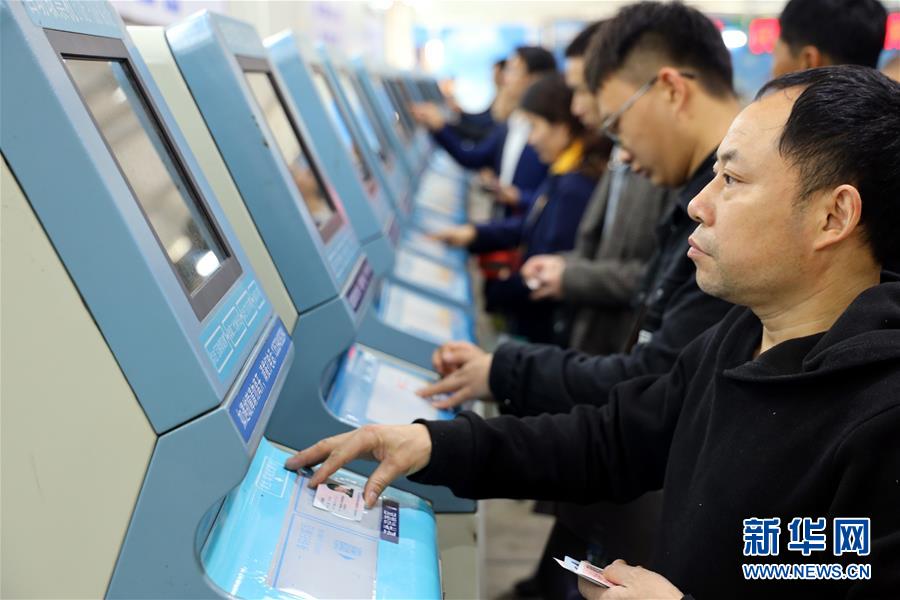 1月15日,旅客在廣州火車站售票大廳外臨時搭建的互聯(lián)網(wǎng)購票取票大棚內(nèi)的自助終端上取票。 為適應(yīng)互聯(lián)網(wǎng)購票旅客比重持續(xù)上升趨勢,廣州火車站在籌備2019年春運(yùn)票務(wù)業(yè)務(wù)時,優(yōu)化互聯(lián)網(wǎng)購票取票和退改簽業(yè)務(wù)辦理流程設(shè)計(jì),提升效率,方便旅客出行。 新華社記者劉大偉攝