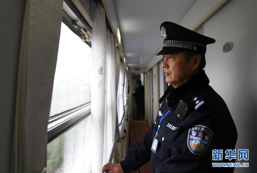 1月1日,在越南河內(nèi)(嘉林)開往中國(guó)南寧的列車上,乘警楊鐵鳴注視著車外。 新華社記者陸波岸攝