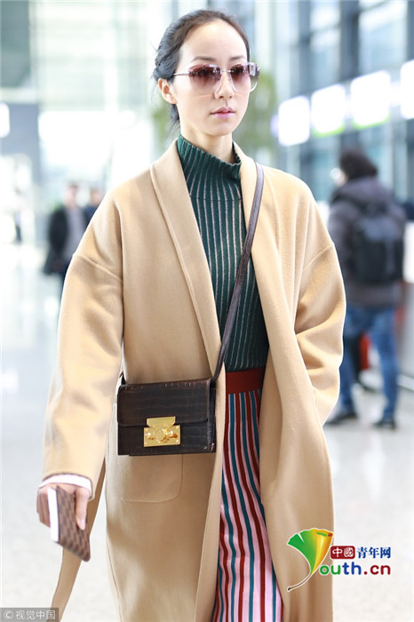 2019年1月17日,上海,韓雪現(xiàn)身機場,穿著條紋紗裙露出小腿,十分抗凍,她搭配經(jīng)典的駝色大衣,氣質(zhì)出眾在機場人群中相當(dāng)搶鏡。