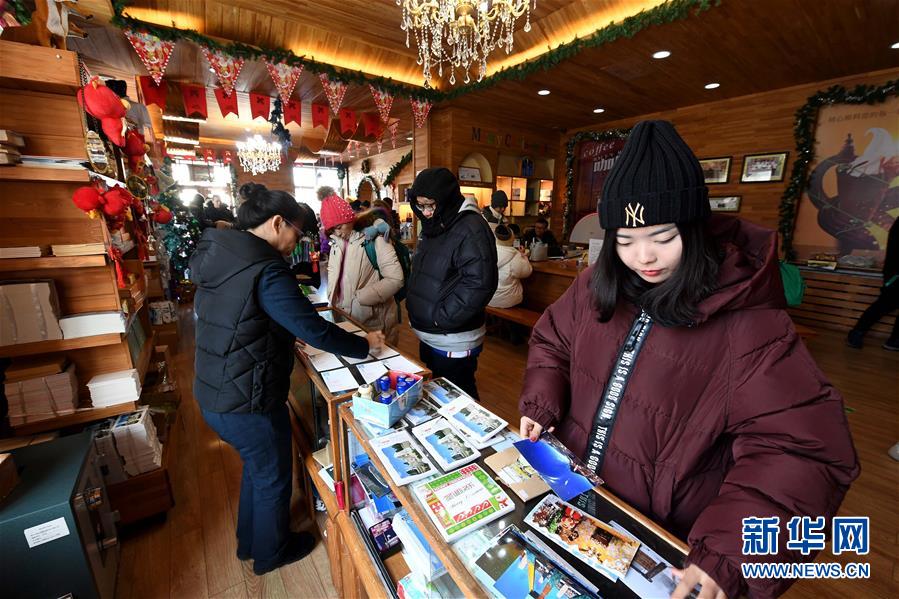 1月24日,在黑龍江省漠河市北極村郵政局,游客在挑選明信片。該郵政局是我國(guó)最北的郵政局。新華社記者王毓國(guó)攝