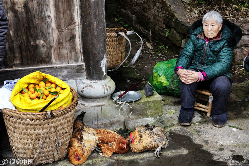 2019年1月26日,重慶中山古鎮(zhèn),880桌“千米長宴”5萬人共品年味。當?shù)刳s來的村民。