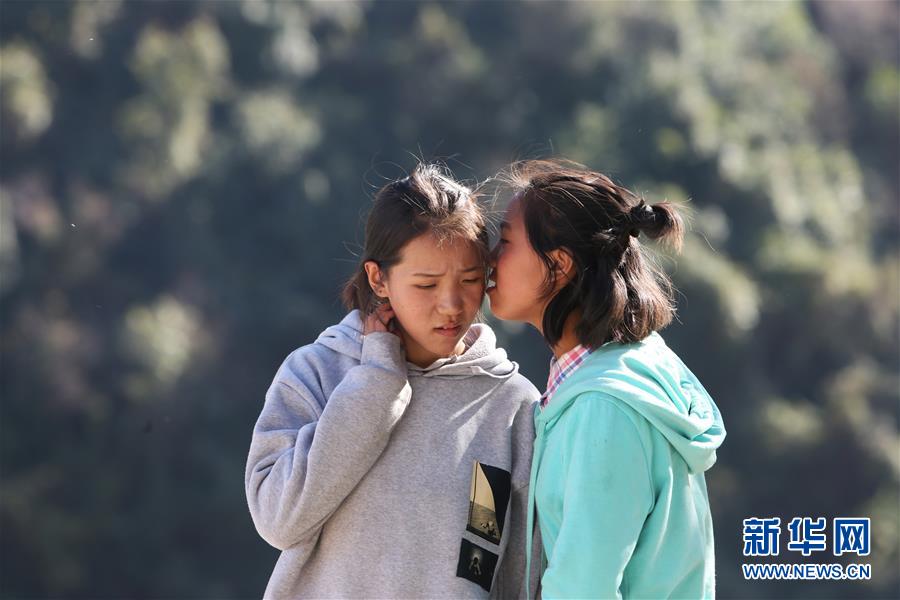 1月24日,在云南省蘭坪縣,褚福妹(左)與妹妹褚福子說悄悄話。