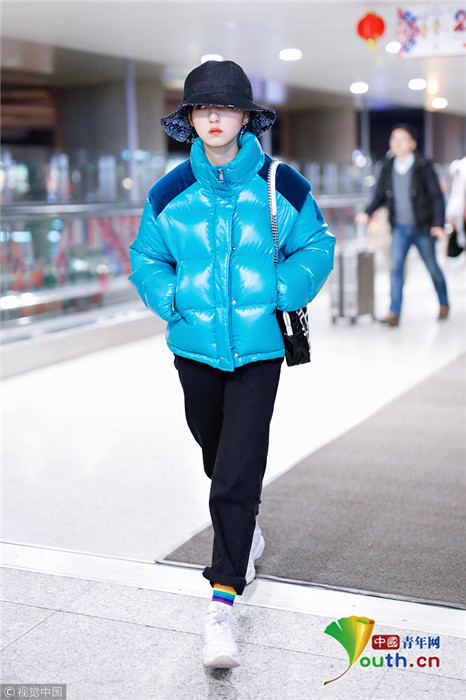 2019年1月31日,上海,張子楓現(xiàn)身機(jī)場(chǎng)。她身穿藍(lán)色羽絨服,戴著大檐帽也難擋好氣色,雪膚紅唇妝容精致展現(xiàn)女人味。