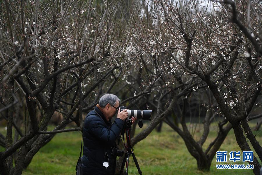 2月17日,攝影愛(ài)好者在杭州西溪濕地國(guó)家公園拍攝梅花。