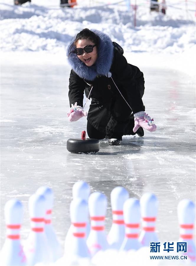 2月17日,一名游客在新疆天池景區(qū)玩冰上保齡球。 2018年入冬至2019年2月17日,新疆天池景區(qū)接待游客23萬人次,實(shí)現(xiàn)旅游經(jīng)濟(jì)收入2.25億元。新疆天池景區(qū)著力發(fā)展冬季旅游,為游客提供優(yōu)質(zhì)冰雪旅游體驗,逐漸將天池“冷資源”變成“熱經(jīng)濟(jì)”。 新華社記者沙達(dá)提攝